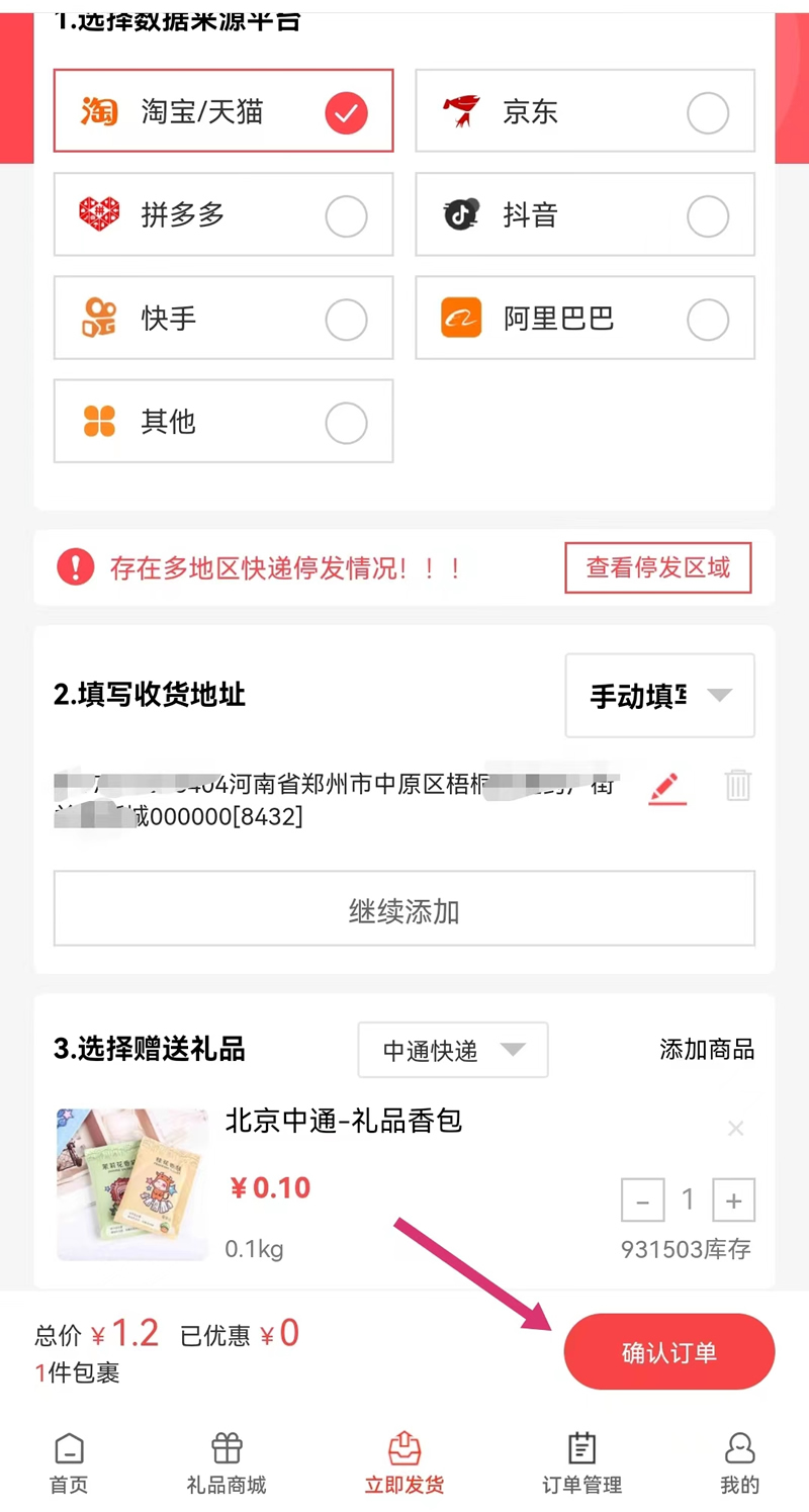 3、选择订单来源的平台,勾选,再点击 智能解析地址工具,复制收件信息进去。